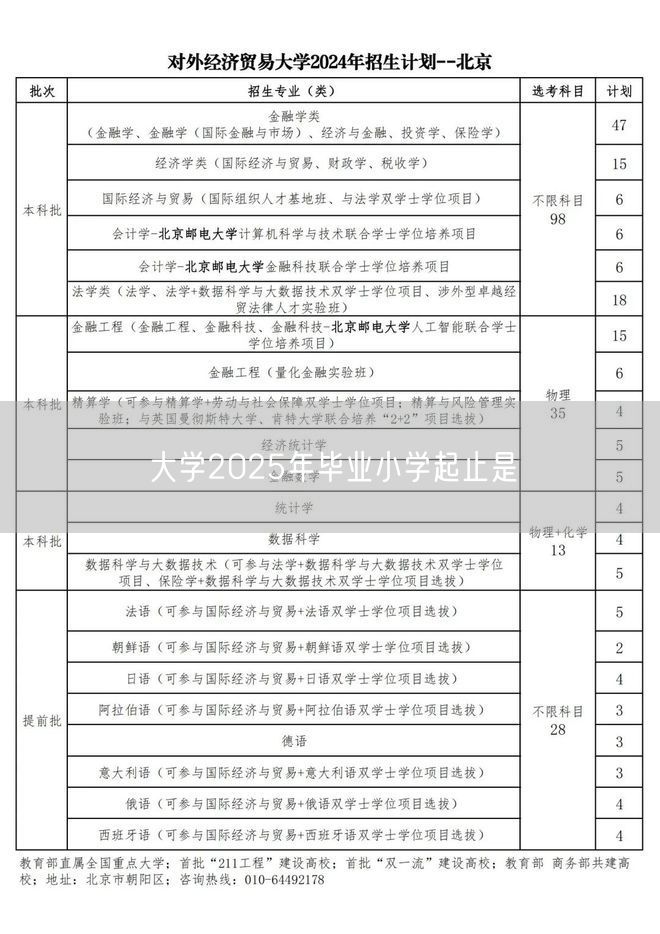 大学2025年毕业小学起止是