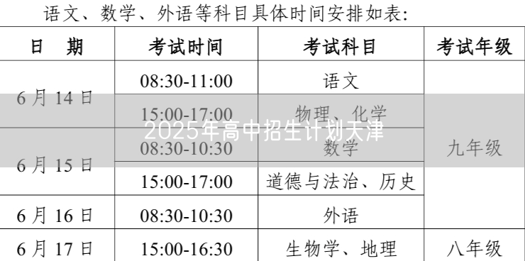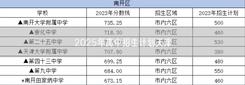 2025年高中招生计划天津