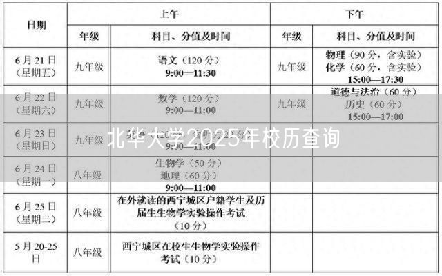北华大学2025年校历查询