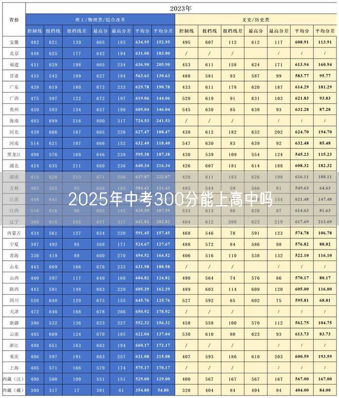 2025年中考300分能上高中吗