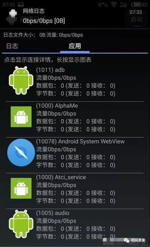 8.此时退到主界面点击“关闭”选项,此时“网络日志”已经打开。右上角已经变成“启动”。如图: