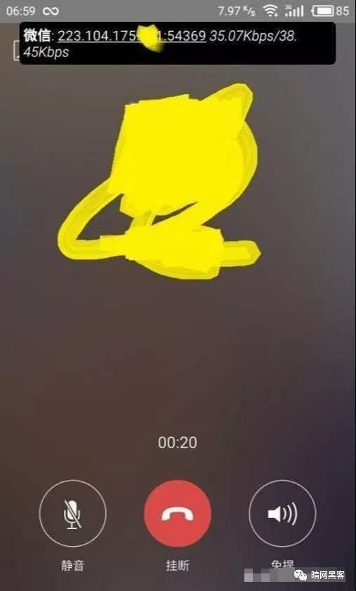 9.我们打开微信,选择“ 语音聊天”,稍等一会后上方出现的唯一IP地址,而且IP地址后面是一个随机的5位端口号。