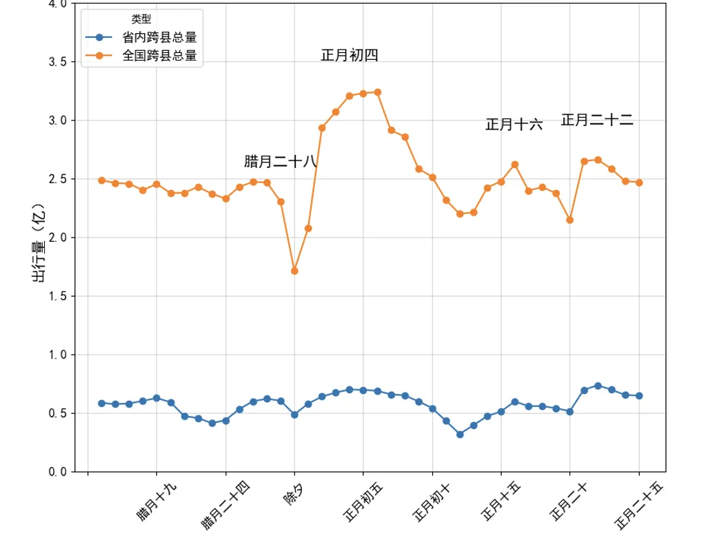 河南省春运趋势与全国跨县春运趋势对比