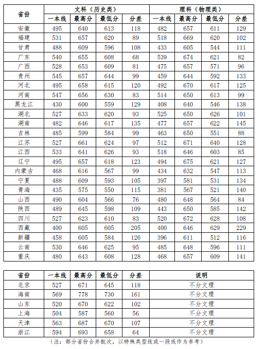 中国政法大学招生录取分数线是多少?