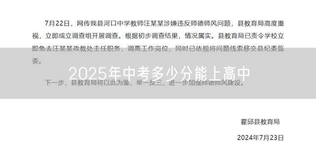 2025年中考多少分能上高中